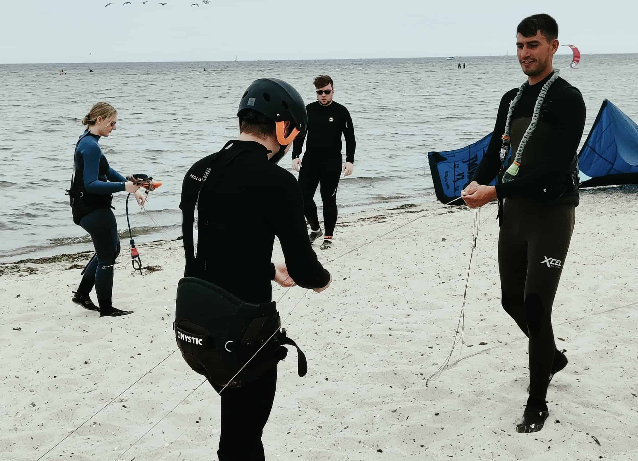 Gehe jetzt noch einmal zu deinem Kite und überprüfe, dass alle Anknüpfpunkte frei liegen. Falls dein Kite an den Powerleinen Waageleinen hat, checke auch, ob diese sauber liegen und einwandfrei funktionieren.